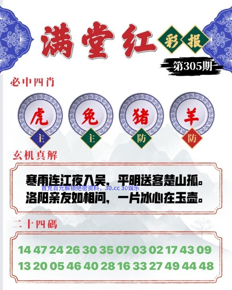305期:龙门客栈解析 掌柜:早春时节 小二:客官,收到 客官:有点味道的酸菜 解:早春时节。解鼠狗猪虎猴鸡 推荐特肖:鼠狗猪虎猴鸡 |